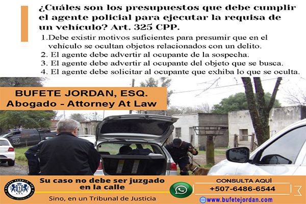 En cumplimiento de la responsabilidad social de la Firma de Abogados Bufete Jordan, ESQ. Este artículo provee al ciudadano información útil que le permite enfrentar una acción policial de Requisa de su vehículo. Recuerde, Su caso no debe ser juzgado en la calle, sino, en un Tribunal de Justicia.